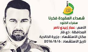 بل بطل من ابطال حشد الله المقدس وهو الشهيد { عمار زبيدي } من اهل الناصرية مدينة المجد والفداء والتاريخ.