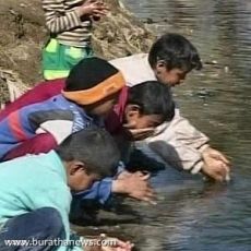 أطفال قرية الكافي يشربون الماء من الترعة التي يشرب منها الحيوانات...