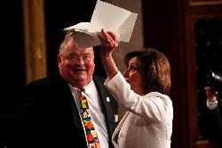 ÃÞÏãÊ ÑÆíÓÉ ãÌáÓ ÇáäæÇÈ äÇäÓí ÈíáæÓí¡ Ýí ÎØæÉ ÛíÑ ÈÑæÊæßæáíÉ¡ Úáì ÊãÒíÞ ãÌãæÚÉ ãä ÇáÃæÑÇÞ ÈÏÊ æßÃäåÇ äÓÎÉ ãä ÎØÇÈ ÇáÑÆíÓ ÇáÃãíÑßí ÏæäÇáÏ ÊÑÇãÈ¡ ãÇ íõÙåÑ Åáì ÍÏø ßÈíÑ ÛíÇÈ ÇáÊæÇÝÞ ÈíäåãÇ.