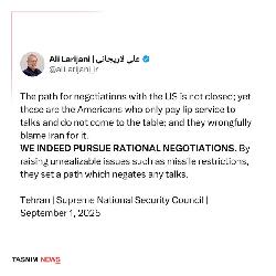 لاريجاني: باب المفاوضات مع الولايات المتحدة ليس مغلقاً