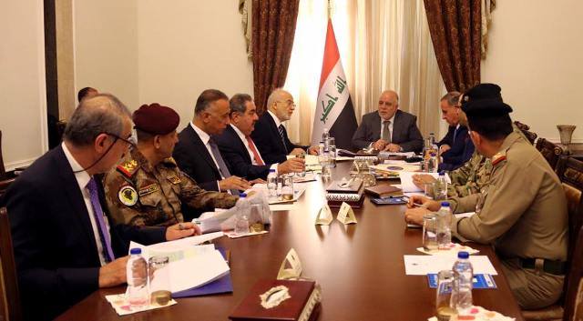 وقال مكتب العبادي في بيان إن "رئيس مجلس الوزراء القائد العام للقوات المسلحة حيدر العبادي ترأس اليوم، اجتماعا للمجلس الوزاري للأمن الوطني"، مبينا أنه "جرى خلال الاجتماع متابعة القرارات والتوجيهات التي صدرت في الاجتماعات السابقة ومناقشة الأوضاع الأمنية والعمليات العسكرية في قواطع العمليات لتحرير الأراضي".