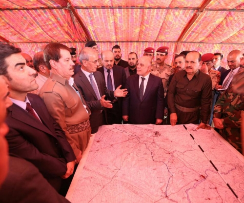 وذكر بيان لمكتبه، ان العبادي "عقد رئيس في كركوك اليوم اجتماعا مشتركا لاعضاء مجلس محافظة كركوك والقيادات الامنية والعسكرية بحضور محافظ ورئيس مجلس المحافظة، وجرى خلال الاجتماع مناقشة الاوضاع العامة في المحافظة وتحرير بقية المناطق من عصابات داعش الارهابية وتقديم الخدمات والنازحين".