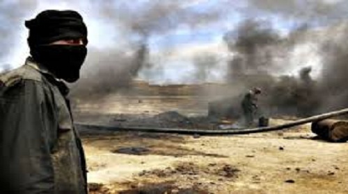 قام تنظيم داعش الارهابي, اليوم الاثنين, بحرق خنادق النفط الاسود جنوب شرق الموصل لحجب الرؤية عن الطيران الحربي.