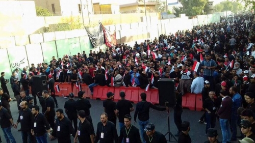 وكان زعيم التيار الصدري مقتدى الصدر اوعز يوم امس الى اتباعه بالتظاهر امام السفارة التركية، وتأجيل التظاهر امام محكمة الساعة، دعما للقوات الأمنية المقاتلة في مدينة الموصل.