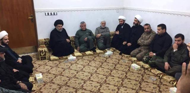 بحث زعيم التيار الصدري مقتدى الصدر، مع قادة الحشد الشعبي، الملف الأمني والسياسي وتحرير الأراضي المتبقية من دنس عصابات داعش الإرهابية.