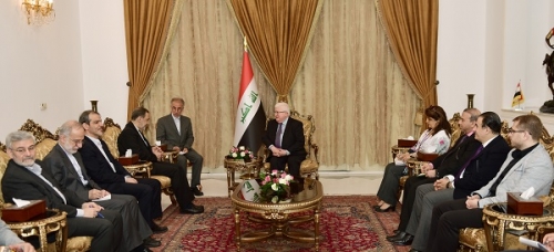 ورحب الرئيس معصوم بالوفد الزائر، مثمّناً موقف الجمهورية الإسلامية الداعم للعراق في حربه المصيرية ضد عصابات داعش المجرمة، موضحاً أن الجارة إيران هي من أولى الدول التي ساندت العراق في مواجهته للإرهاب الداعشي، مشدداً على ضرورة تعميق التعاون بين جميع دول المنطقة للقضاء على تنظيم داعش الإرهابي بشكل نهائي باعتباره تهديداً خطيراً على الإنسانية جمعاء".