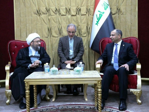 وذكر بيان لمكتب رئيس البرلمان الإعلامي اليوم ،ان " الجبوري استقبل في مكتبه الخاص, اليوم الاحد, رئيس السلطة القضائية في جمهورية ايران الاسلامية صادق لاريجاني والوفد المرافق له"، مبينا ان ”رئيس البرلمان واكد في كلمة خلال اللقاء على اهمية ان تضيف هذه الزيارة لبنة جديدة مثمرة الى مسيرة العلاقات بين البلدين الجارين الصديقين" .
