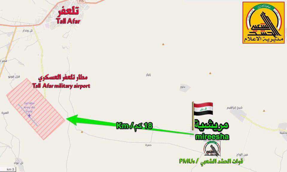 قوات الحشد الشعبي تبعد 18 كيلومترا عن مطار تلعفر .