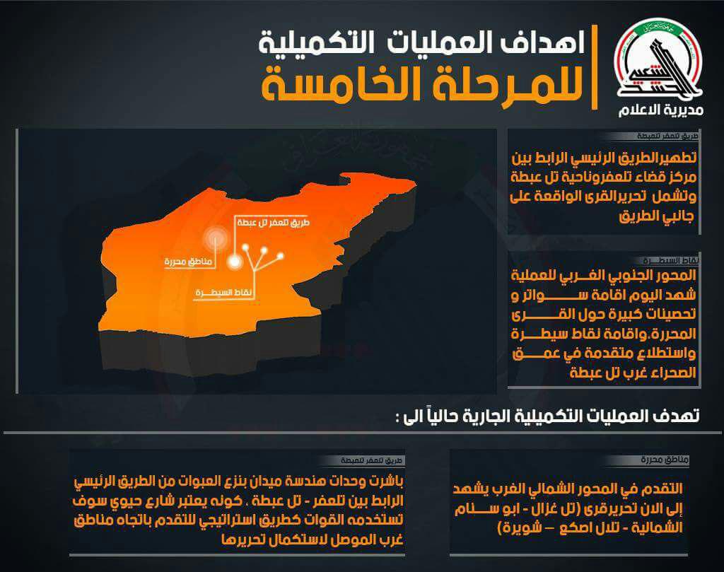 3_ الحشد الشعبي : قوات الحشد الشعبي تحرر مدينة (اشــــواه) غرب تل عبطة بالكامل ، و تبدأ بملاحقة بعض الجيوب المتخفية .