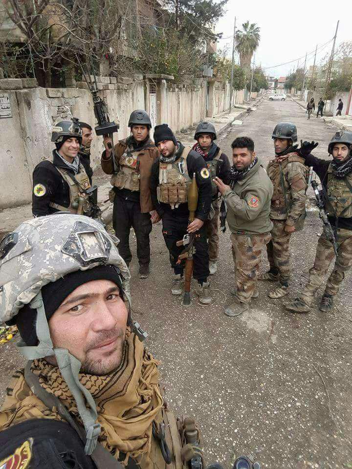 2. المحور الشرقي لقطعات فق مع9 ول3 فق1 تمكنت قطعاتنا من التوغل داخل حي الانتصار وجديدة المفتي والسلام ويونس السبعاوي وفلسطين ومستمرة بتطهير الطرق والمباني للمناطق فيماحاول الارهابين التعرض على القطعات في حي الانتصار والسلام بالعجلات المفخخة والاشخاص وتمكنت القطعات من تفجير 3 عجلات مفخخة وقتل 27 ارهابي .