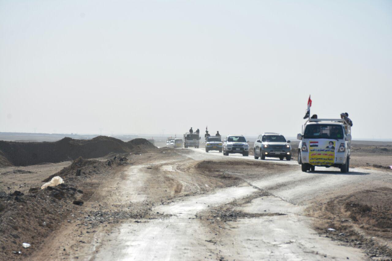 سيرت قافلة هئية الإماميين العسكريين عليهما السلام التابعة لقضاء التاجي شمالي بغداد قافلة دعم لوجستي متكامل لقوات الحشد الشعبي (اللواء التاسع ( لواء المنتظر عج ) في منطقة طريق اللاين جنوب غرب الموصل .