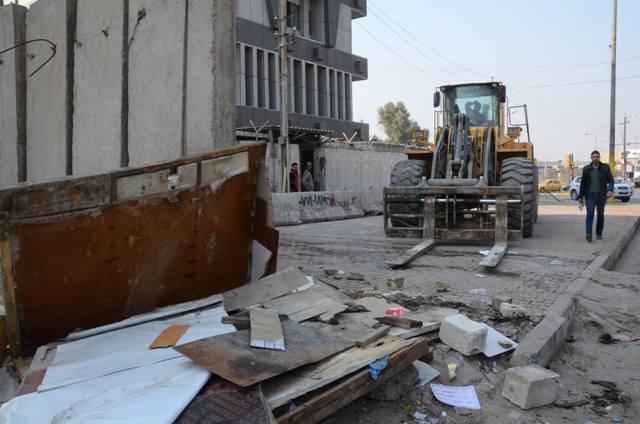 وقال قائد عمليات بغداد اللواء الركن جليل الربيعي في حديث صحفي انه تم "اليوم رفع كافة الكتل الكونكريتية من امام جوازات الكرخ في منطقة العلاوي ببغداد، مع توسيع الشارع الخاص بالمركبات الى عشر مترات"، مشيرا الى ان" رفع هذه الكتل من شانه فك الازدحام المروري الحاصل في هذه المنطقة".