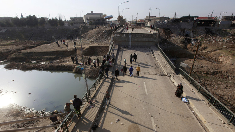 يذكر أن القوات العراقية انتهت تقريبا من السيطرة على الجانب الشرقي (الساحل الأيسر) من المدينة، وبدأت تستعد للهجوم على الجانب الغربي الذي يتوقع أن يشهد حرب شوارع عنيفة بسبب ضيق الأزقة وتشعبها في الأحياء القديمة. وكانت جميع الجسور على نهر دجلة التي تربط جانبي المدينة دمرت بتفجيرات نفذها التنظيم، أو بغارات جوية شنها التحالف بقيادة الولايات المتحدة.