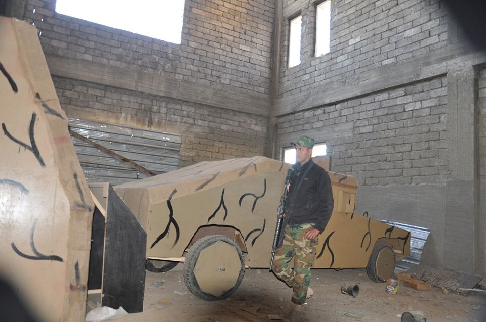 وذكر بيان لوزارة الدفاع "عثر قسم استخبارات عمليات تحرير نينوى احد تشكيلات مديرية الاستخبارات العسكرية على ورشة لصناعة مشبهات العجلات الوهمية من مادة الخشب التابعة لعصابات داعش الإرهابية".