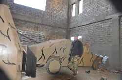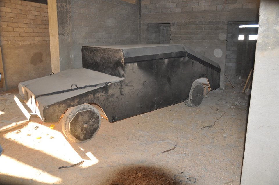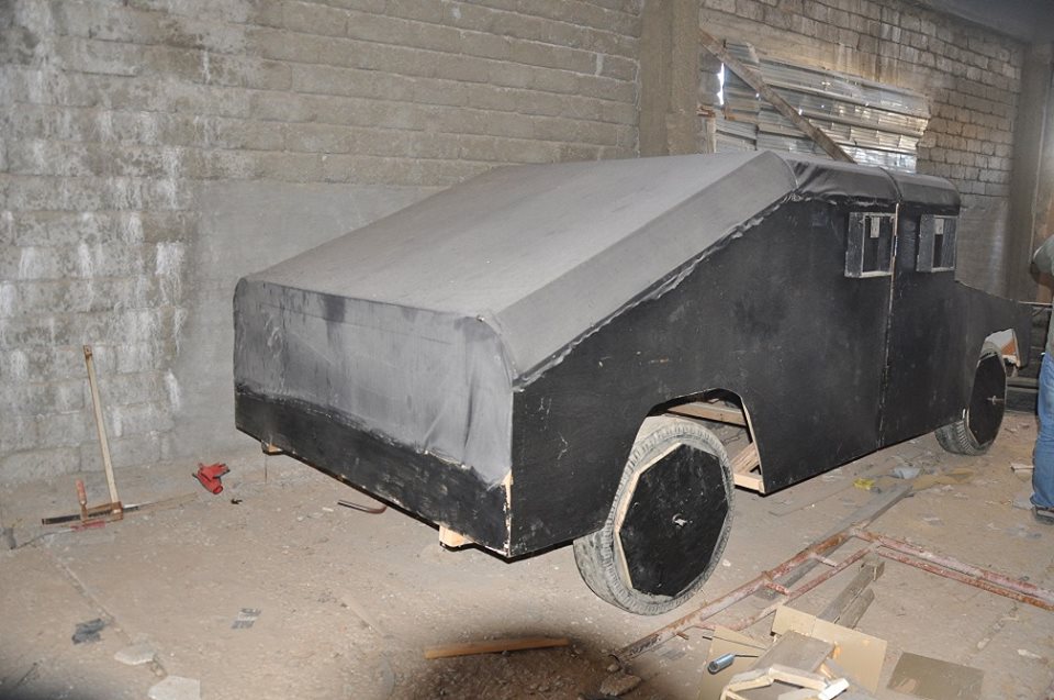 عثرت القوات الامنية على ورشة لعصابات داعش الارهابية لصناعة عجلات وهمية من الخشب في الساحل الايسر لمدينة الموصل.