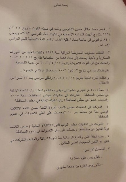 تنشر وكالة انباء براثا السيرة الذاتية لوزير الداخلية الجديد، وهو رئيس كتلة بدر النيابية، قاسم الأعرجي، وصوت البرلمان في جلسته اليوم بالموافقة على ترشيحه للمنصب.