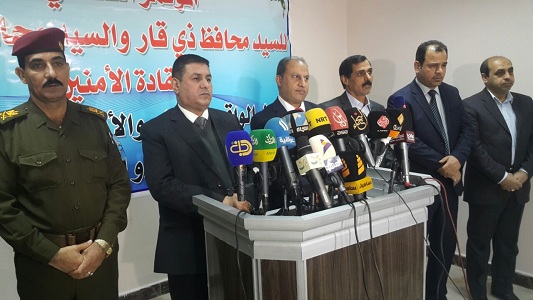 وقال الزيادي خلال مؤتمر صحفي مشترك مع محافظ ذي قار يحيى الناصري عقد في مقر هيئة حقول نفط ذي قار بوجود قائد عمليات الرافدين ومدراء شرطة المحافظتين ان الطرفين اتفقا على رسم خطة امنية مشتركة وفق الامكانيات البشرية والمادية للاجهزة الامنية يالتنسيق مع قيادة عمليات الرافدين من خلال استمرار الاستطلاع الجوي وتكثيف الجهد الاستخباري لمنع اي محاولة تستهدف محافظتي ذي قار والمثنى.