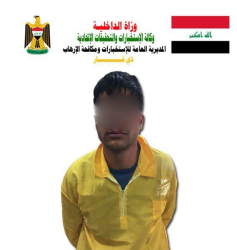 وذكر بيان لشرطة ذي قار أنه "وبناءً على معلومات استخبارية دقيقة تمكنت مديرية الاستخبارات ومكافحة الإرهاب في ذي قار من إلقاء القبض على متهم مطلوب وفق أحكام المادة الرابعة من قانون مكافحة الإرهاب ينتمي لداعش عند دخوله إلى مدينة الناصرية".