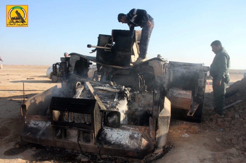 وذكر بيان لإعلام الحشد أن "قوات الحشد الشعبي/ لواء ١٨ فجر ثلاث عجلات ملغومة من أصل ٦ أثناء صده لهجوم عناصر داعش بالقرب من قرية الحجف". غرب الموصل.