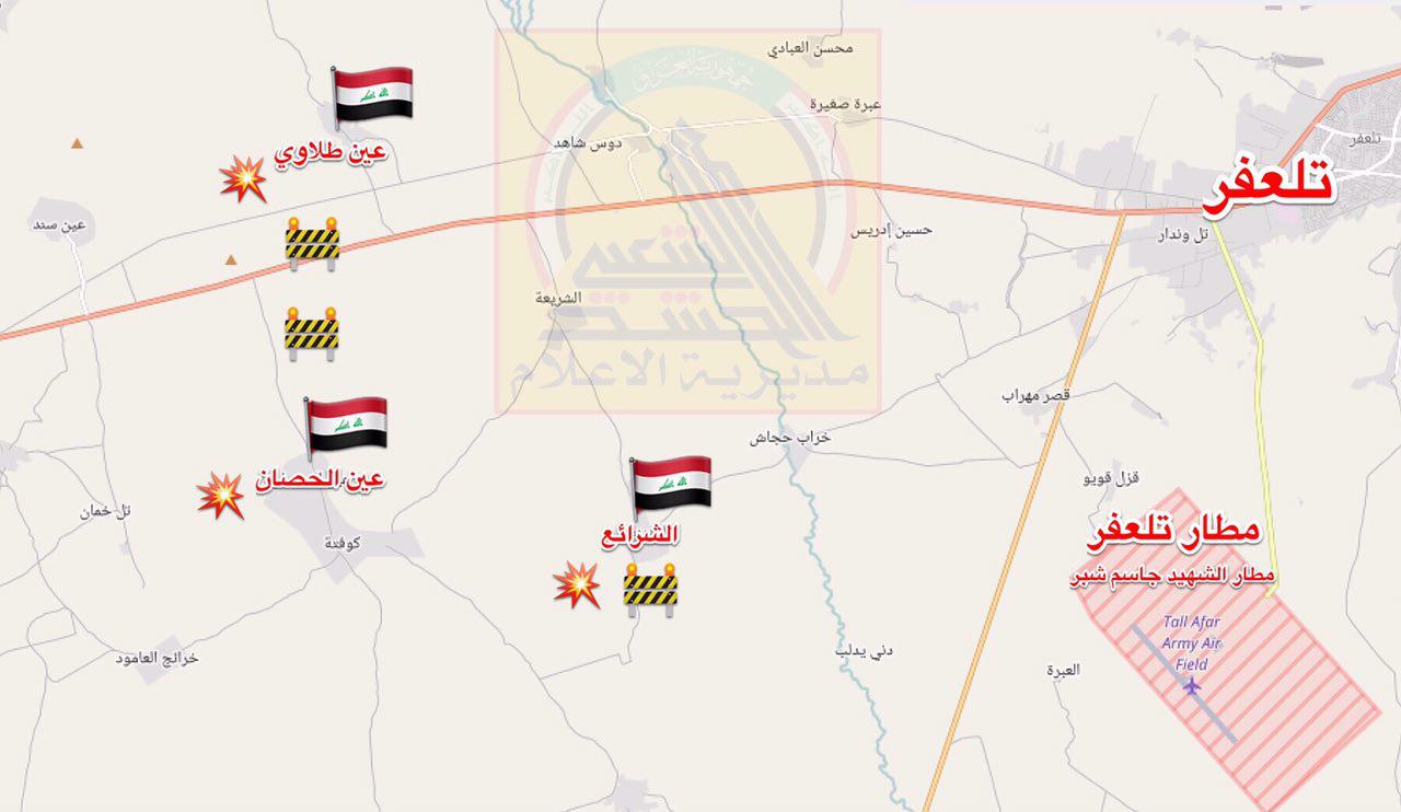 يذكر ان قوات الحشد الشعبي قطعت كافة خطوط الامداد لداعش في المحور الغربي مما جعل العدو يشن تعرضات فاشلة لفتح ثغره بإتجاه سوريا.