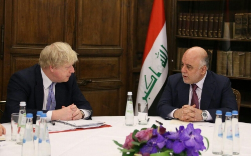 بحث رئيس الوزراء حيدر العبادي في مقر إقامته بمدينة ميونخ في ألمانيا مع وزير الخارجية البريطاني بوريس جونسون تطوير العلاقات بين البلدين وزيادة التعاون في المجالات كافة وفي مقدمتها دعم القوات القوات العراقية والاجهزة الامنية في مواجهة الارهاب.