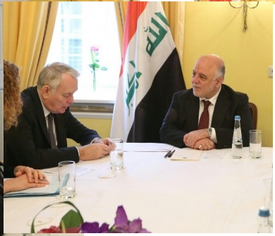 من جهته طلب العبادي من الوزير الفرنسي "نقل شكره وتقديره للرئيس الفرنسي ولموقفه الداعم للعراق وشعبه والرغبة المشتركة في تطوير العلاقات بين البلدين الصديقين".