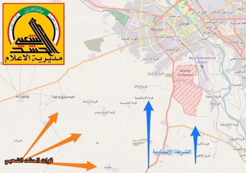 تتقدم قوات الحشد الشعبي باتجاه تل كيصوم غرب الساحل الايمن لمدينة الموصل.