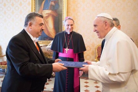 من جانبه ، أشاد قداسة البابا فرنسيس بالإنتصارات المتحققة ضد الإرهاب, مؤكداً دعم الفاتيكان للعراق في حربه التي يقودها ضد الارهاب, موجهاً الدعوة الى رئيس جمهورية العراق فؤاد معصوم لزيارة الفاتيكان، متمنياً للسفير النجاح في مهام عمله الجديد".