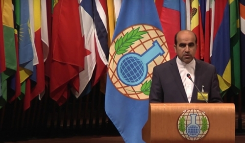 ودعا جهانغيري، في كلمة ألقاها امام اجتماع المجلس التنفيذي الرابع والثمانين للمنظمة، في لاهاي، الى " عدم تسييس الملف السوري في المنظمة والمساعدة بتحسين ظروف هذا البلد".
