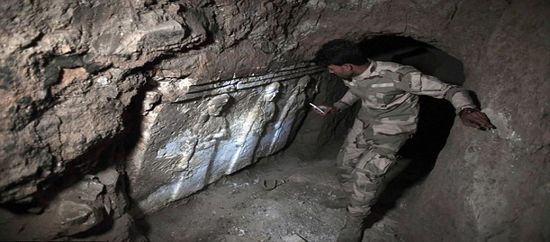 ويصف كاتب التحقيق عملية سيره في نفق ضيق حفره ارهابيو التنظيم في منطقة تحت جامع النبي يونس، وكيف أنه شاهد كتابات مسمارية على الجدران وبقايا جرار وعظام تكشف عن مرورة وسط آثار قصر ملكي في العاصمة الآشورية القديمة نينوى، التي يصفها بأنها واحدة من أعظم وأقدم المدن في العالم.