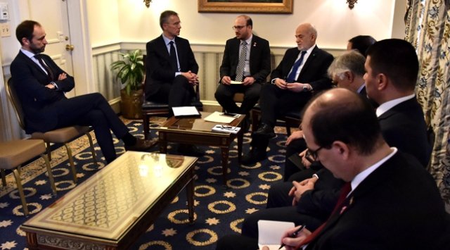 وقال مكتب الجعفري في بيان إن الأخير "التقى على هامش اجتماع التحالف الدولي ضد عصابات داعش الإرهابية في العاصمة الأميركية واشنطن الأمين العام لحلف شمال الأطلسي (الناتو) ينس ستولتنبرغ بحضور وزير الدفاع عرفان الحيالي"، مشيراً الى أنه "جرى خلال اللقاء استعراض سير العملـيات العسكرية ضد الإرهاب وجهود العراقـيين في تحرير أراضيهم من قبضة عصابات داعش الإرهابية".