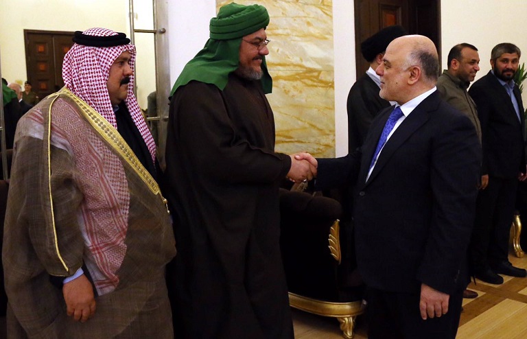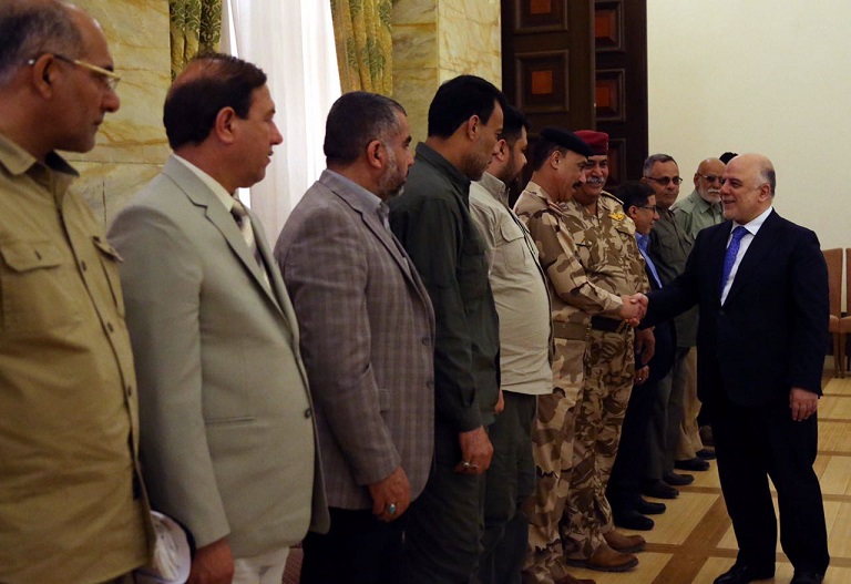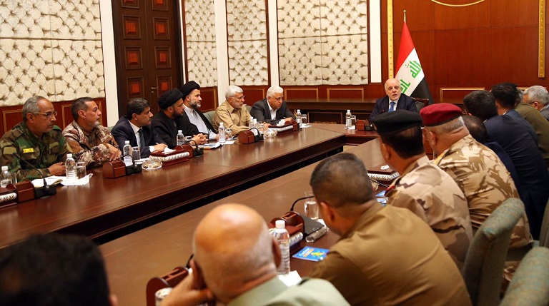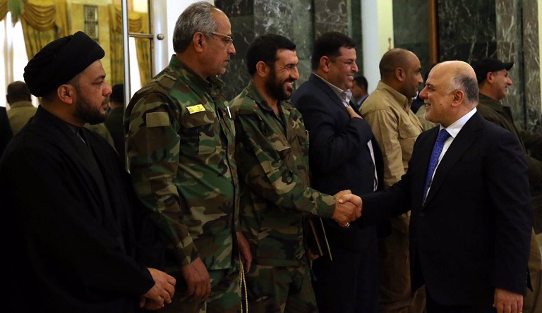 وجدد العبادي التأكيد على، ان "كل السلاح يجب ان يكون تحت اطار الدولة ولن نسمح مطلقا لاي سلاح يكون خارج اطار الدولة مشيرا الى ان هناك من يدعي الانتماء للحشد ويسيء له".