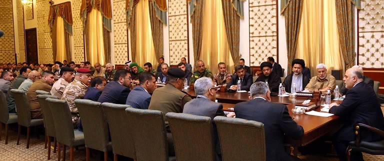 جاء ذلك خلال كلمة له اثناء لقائه قادة الحشد الشعبي، وتلقت وكالة نون الخبرية، نسخة منها، حيث بارك العبادي الانتصارات المتحققة على عصابات داعش الارهابية التي لم تكن تحصل لولا تضحيات الحشد الشعبي مع بقية القوات المسلحة مبينا ان روح الانتصار اخافت الاعداء وارعبتهم.