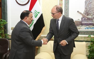 بحث وزير الدفاع عرفان الحيالي مع السفير الأمريكي في بغدا دوغلاس سيليمان ما سيقدمه العالم للعراق في ما بعد عصابات داعش الارهابية في بناء جيشه وإعادة أعمار.