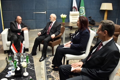 من جانبه أعرب وزير خارجيَّة مصر سامح شكري عن حرص بلاده على وحدة العراق، وسلامة أراضيه، وبارك جُهُود العراقيين في مُواجَهة الإرهاب،" مُوضِحاً: ندعم عودة العراق إلى مكانته البارزة في المنطقة العربيَّة، مُشدِّداً: علينا العمل على مُواجَهة التحدِّيات، وتخفيف حِدَّة الأزمات التي تواجه المنطقة العربيَّة".