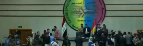 صوت مجلس محافظة كركوك في جلسته اليوم الثلاثاء على طلب محافظ كركوك نجم الدين كريم برفع عليم اقليم كردستان على الدوائر الحكومية في المحافظة الى جانب العلم العراقي الاتحادي.