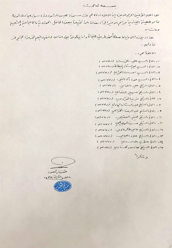 كما سمى الصدر بحسب بيان آخر لمكتبه "أعضاء [مجلس الشورى]، على أن تناط به مهام ابداء المشورة له أو للهيئة القيادية اضافة الى تمثيله في بعض المحافل".