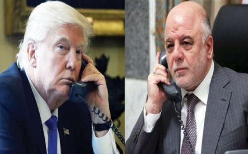 تلقى رئيس الوزراء حيدر العبادي اتصالا هاتفيا من الرئيس الامريكي دونالد ترامب.