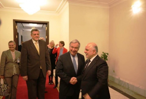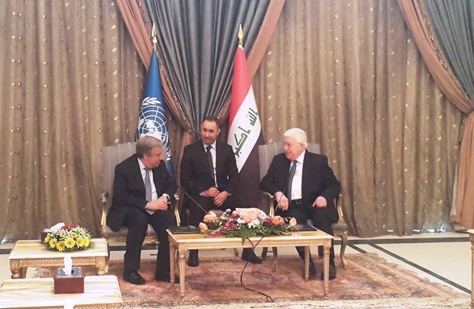 وذكر بيان لبعثة الامم المتحدة في العراق [يونامي] أن غوتيريش "ألتقى رئيس الجمهورية فؤاد معصوم، ورئيس الوزراء حيدر العبادي ورئيس مجلس النواب سليم الجبوري".