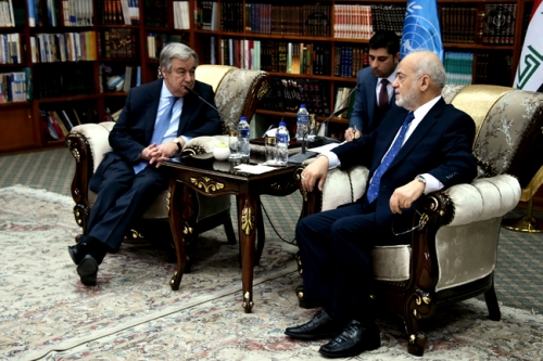 بحث وزير الخارجية إبراهيم الجعفري مع الأمين العام للأمم المتحدة أنطونيو غوتيريش والوفد المرافق له في بغداد، مجمل الأوضاع الإنسانية والأمنية والسياسية وجهود العراقيين وانتصاراتهم المتحققة ضد عصابات داعش الإرهابية والتأكيد على أهمية زيادة حجم المساعدات المقدمة للعراق.