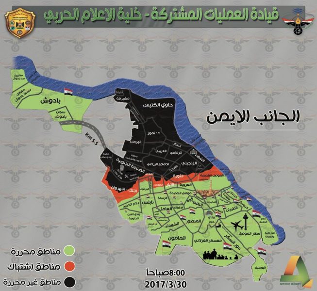 نشر مركز نينوى الإعلامي،خارطة توضح اخر المستجدات لمعركة تحرير الجانب الايمن من مدينة الموصل.