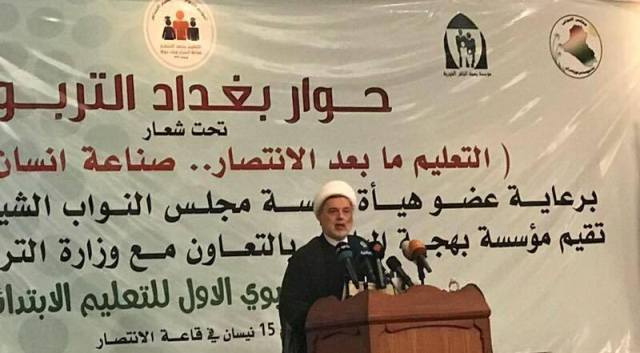 دعا نائب رئيس البرلمان الشيخ همام حمودي، السبت، الى إعداد فلسفة تربوية رسمية أساسها الانتماء للعراق وتعميق "قيم المحبة والتسامح والتكافل"، مؤكدا ضرورة استنفار الجهود لإعادة الاعتبار لمكانة المعلم وهيبته، فيما لفت الى أن الحكومة فشلت في قضية توفير الأبنية المدرسية.