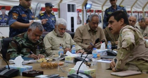 بحث نائب رئيس هيأة الحشد الشعبي ابو مهدي المهندس مع قائد عمليات قادمون يانينوى الفريق الاول الركن عبد الامير رشيد يارالله ، اليوم الاربعاء، سير العمليات العسكرية الجارية في الموصل.