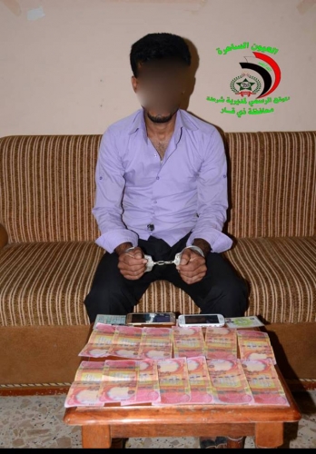 وذكر بيان لمديرية الشرطة انه "ومن خلال العمل الميداني ومتابعة العناصر المشبوهة توفرت معلومات دقيقة لدى خلية استخبارات فوج طوارئ شرطة ذي قار الأول عن قيام احد الأشخاص بترويج العملة المزورة داخل سوق الهرج وسط الناصرية".