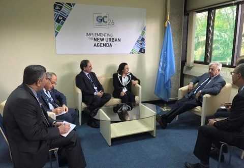 على صعيد متصل التقت وزير الاعمار بالمدير التنفيذي لبرنامج الامم المتحدة لشؤون البيئة [اريك سولهايم], وطلبت دعم المدير التنفيذي لأجراء مسوحات بيئية للمناطق المحررة للتأكد من خلوها من المواد الملوثة والمتفجرات والعبوات الناسفة.