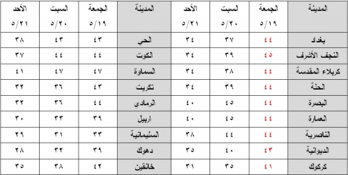 وذكر تقرير للهيئة ، "من المتوقع ان ترتفع درجات الحرارة يوم غد الجمعة في عموم البلاد لتكون اعلى من معدلاتها العامة بعدة درجات".