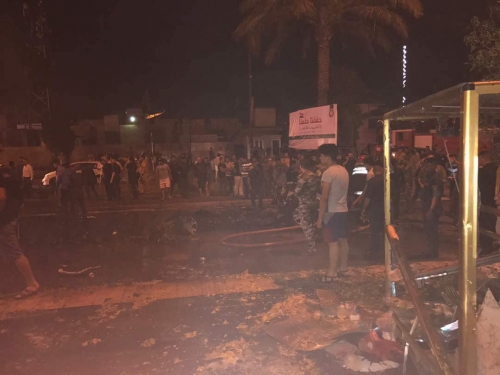 وكانت سيارة ملغومة انفجرت بمنطقة الكرادة خارج قرب مرطبات الفقمة بساعة متأخرة من ليل الاثنين.