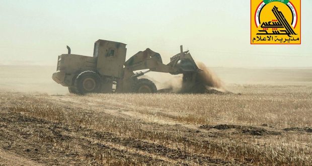 إعلام الحشد الشعبي اوضح في بيان، إن الهندسة العسكرية للحشد الشعبي باشرت بغلق الثغرات التي احدثها داعش الارهابي في الساتر الحدودي والتي استخدمها سابقا كمنافذ للعبور والتسلل بين العراق وسوريا.