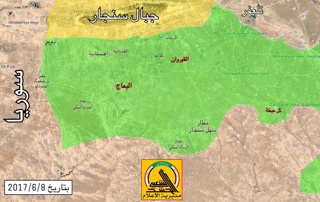 يذكر ان قوات الحشد الشعبي تمكنت في الرابع من حزيران من تحرير قضاء البعاج بالكامل من سيطرة داعش الارهابي بعملية نوعية وخاطفة من ثلاثة محاور مكبدة تنظيم داعش الاجرامي خسائر كبيرة بالأرواح والمعدات.
