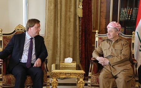 وذكر بيان لرئاسة الاقليم اليوم ان " بارزاني استقبل، اليوم الخميس، اليوم السفير البريطاني لدى العراق فرانك بيكر، والوفد المرافق له، في مصيف صلاح الدين ، وتم خلال الاجتماع مناقشة الوضعين السياسي والأمني في العراق، ومرحلة ما بعد عصابات داعش الارهابية ، بالإضافة إلى العلاقات بين أربيل وبغداد".